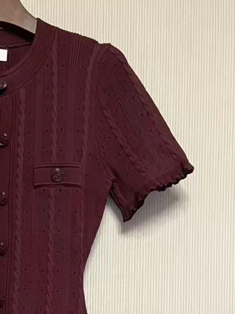 Be the first to review “Popular Elegant New Solid Color Round Neck Dress Short Sleeved Long Knitted Dress for Women”