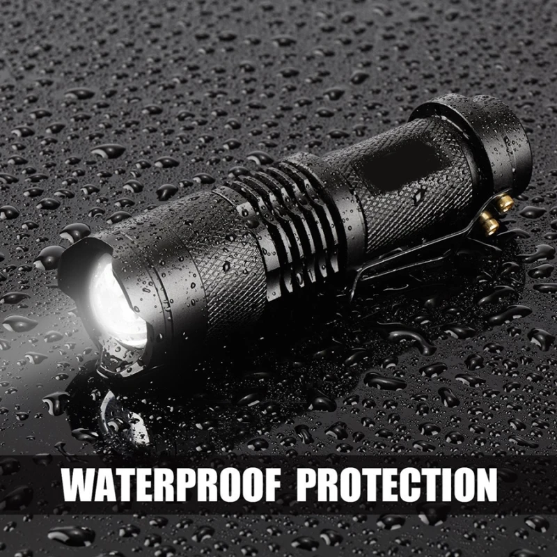 Portable 7W Q5 Aluminum Waterproof 3 /5Modes Zoomable Led Flashlight Torch Tactical light AA 14500 Black