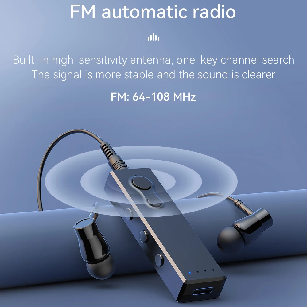 Portable Bluetooth 5.3 MP3 Player Radio Mini FM Radio Rechargeable Collar Clip Walkman HiFi Stereo Music for Headphones Speaker