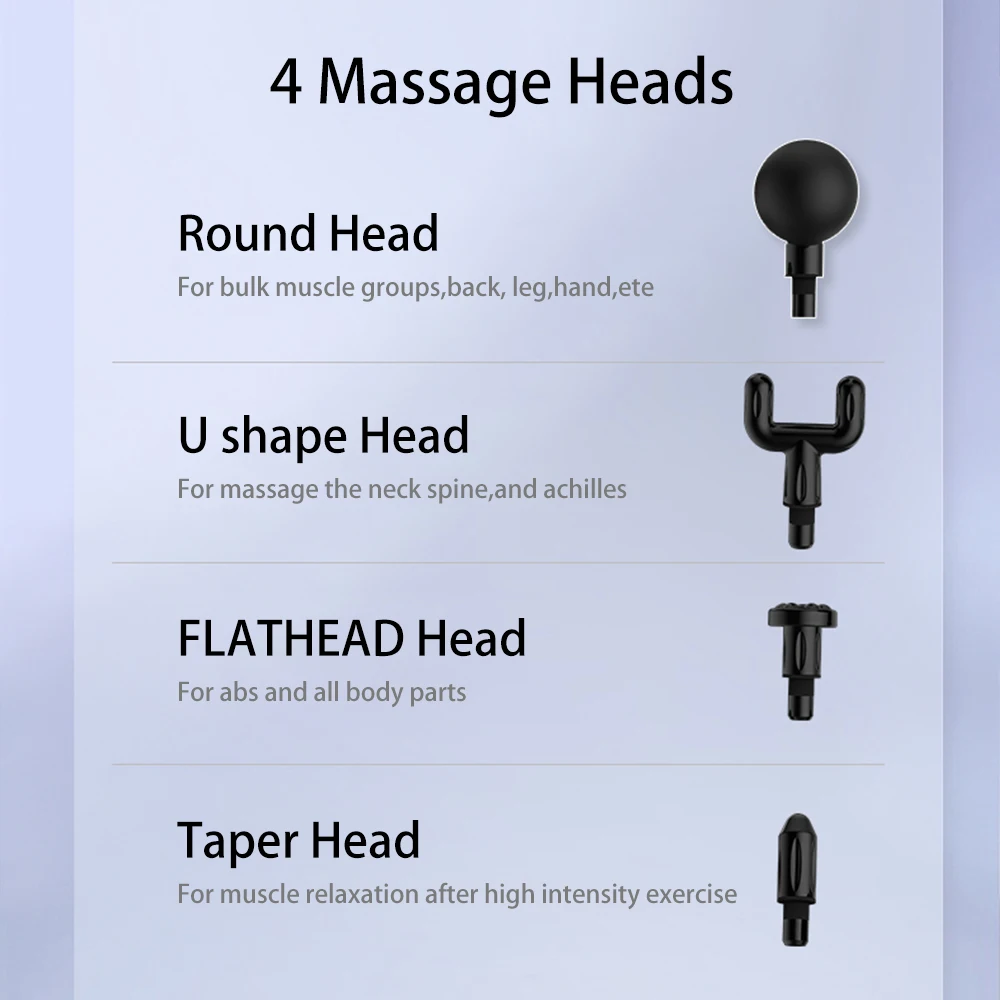 • Portable Fascia Massage Gun: 4 Replaceable Massage Heads