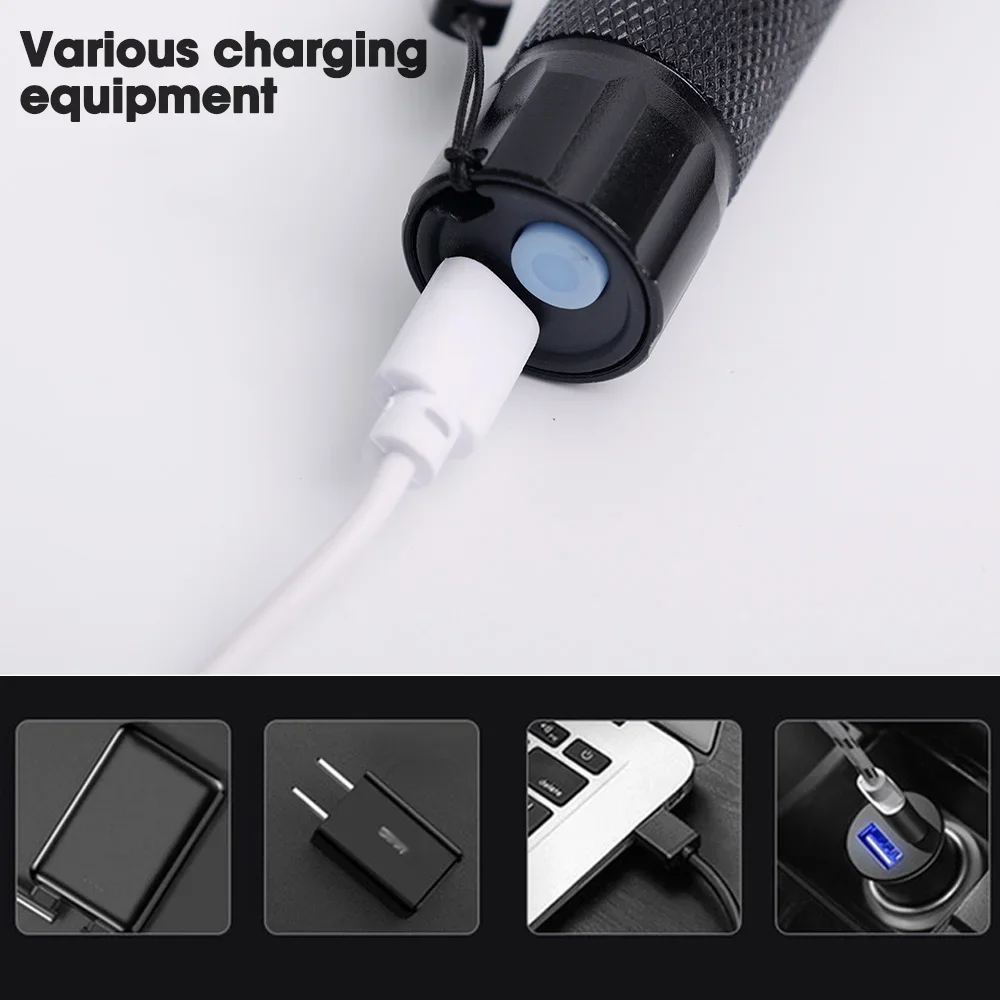 Portable Flashlight USB Waterproof Telescopic Zoom Tactical Torch Outdoor Flashlights High Power Lantern Camp Hiking Lamp