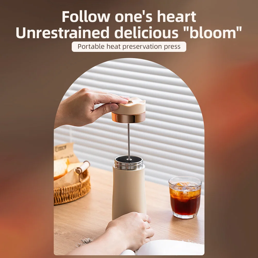 【Portable Coffee Maker】: This 320ml capacity French press mug is perfect for on-the-go coffee lovers. Whether you're camping, hiking, or traveling, this portable coffee maker ensures you can enjoy a freshly brewed cup of coffee anytime, anywhere.