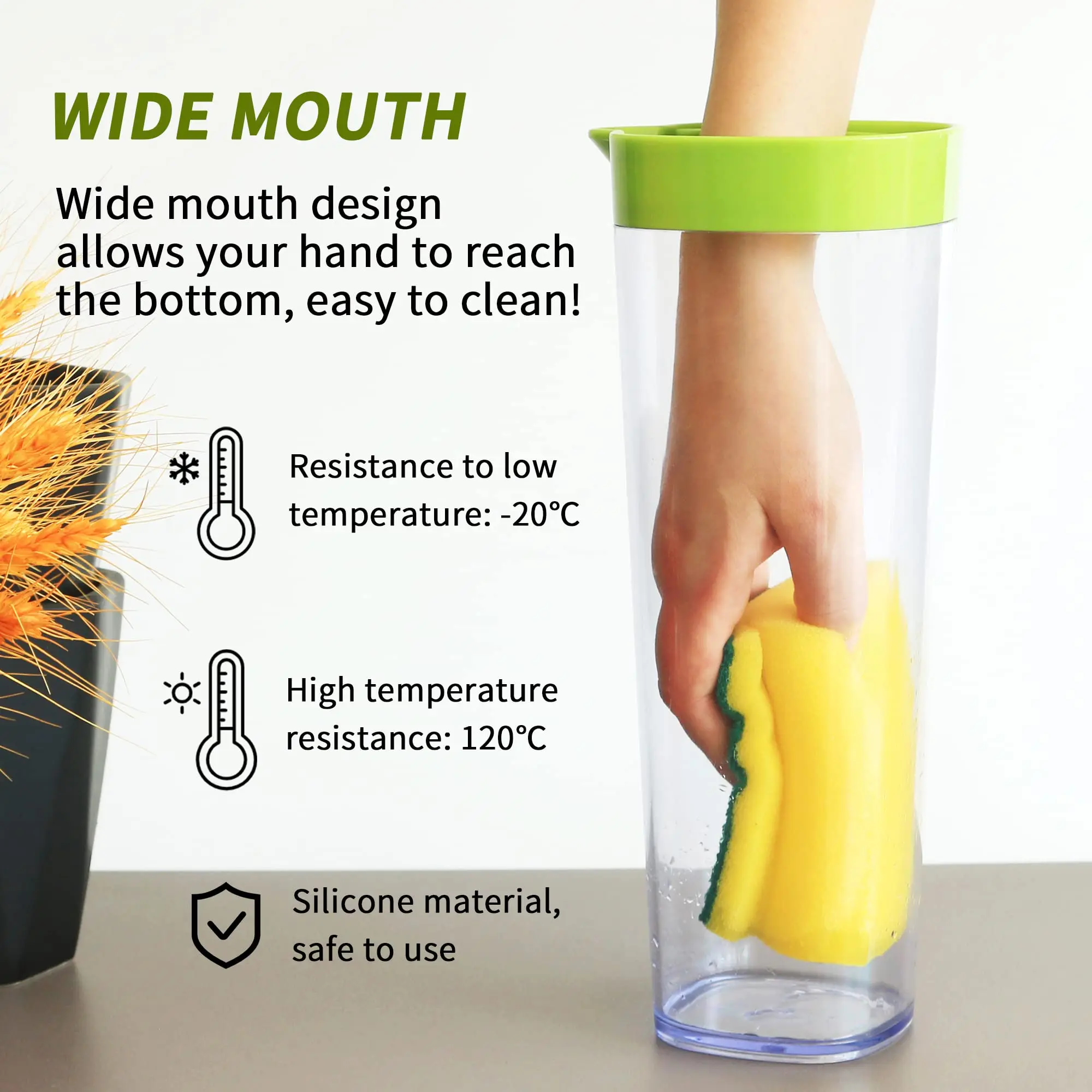 ⭐ 【EASY TO CLEAN AND DUARABLE】:The mouth of this carafe is large enough to put your hands into it and convenient to clean the plastic water pitcher.Our water filter pitcher is made from durable and reliable plastic material that will pass the test of time.You don't need to worry about the water pitcher fragile like glass pitcher.