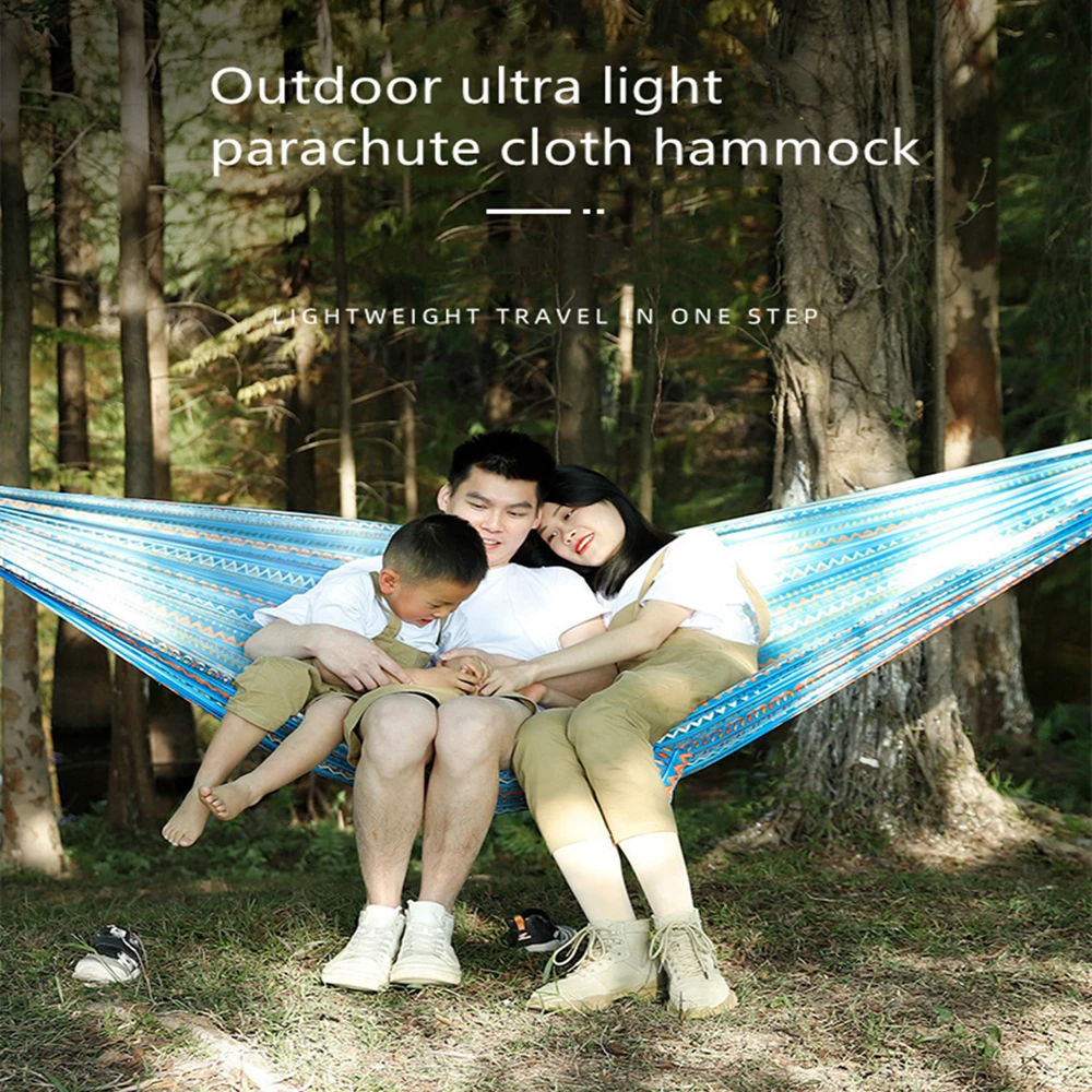 Portable Outdoor Garden Hammocks Quick Open Parachute Cloth Double Travel Camping Sleeping Hanging Hammock Swing Nature Hike