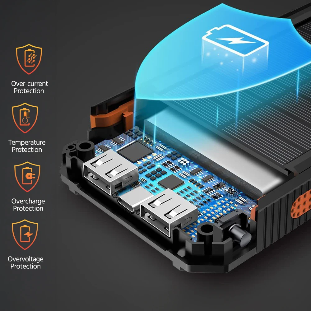 Portable Solar Power Bank 20000mAh Large Capacity Mobile Phone Charger With Flashlight Outdoor Emergency Power Bank For Phones