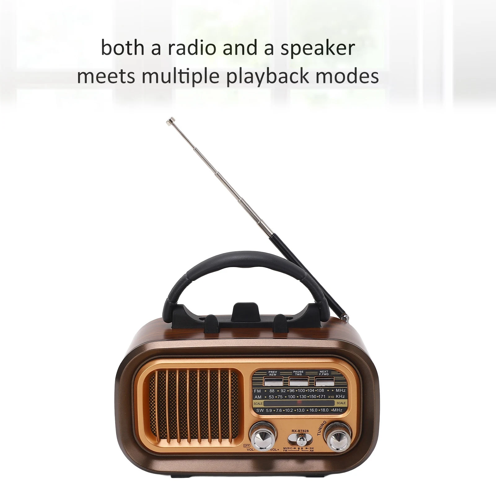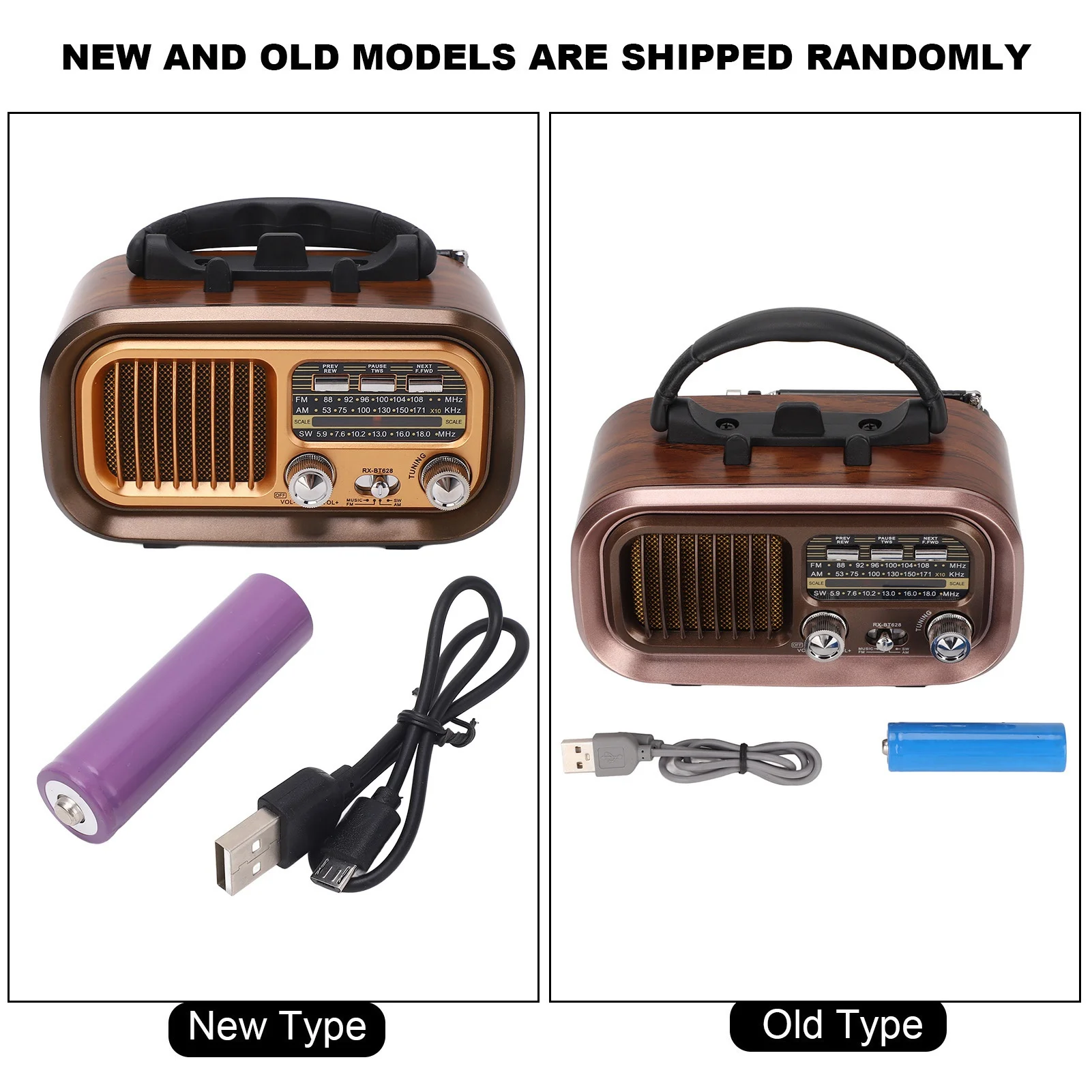 Vintage Design: This bluetooth radio speaker adopts retro appearance, which is unique and novel. Use bluetooth connection.