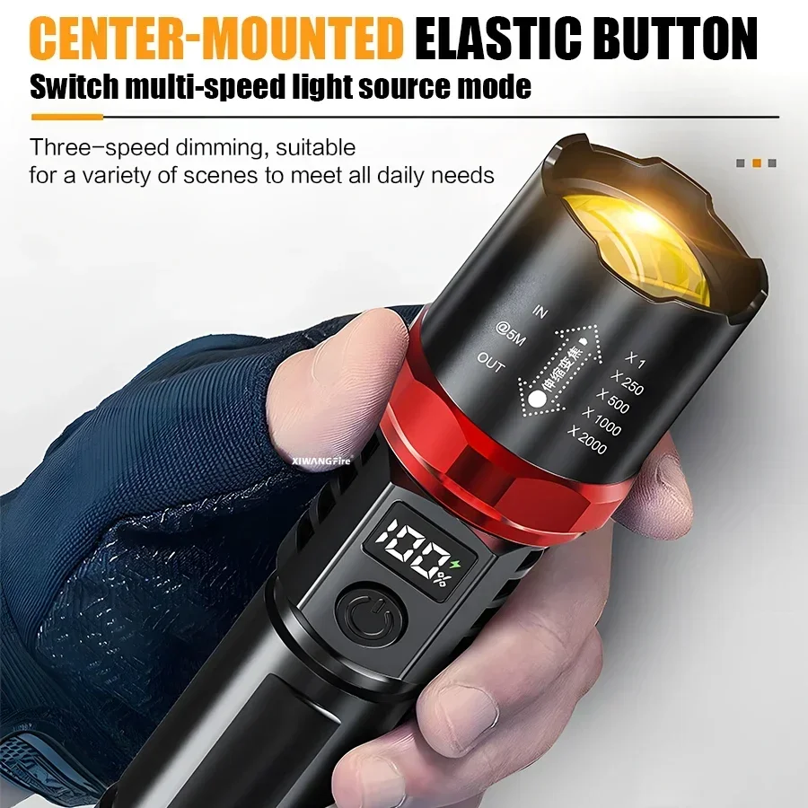 Powerful LED Flashlight TYPE-C Rechargeable Waterproof Zoom Fishing Hunting Camping 1000 Lumen Tactical Flashlight LED Torch