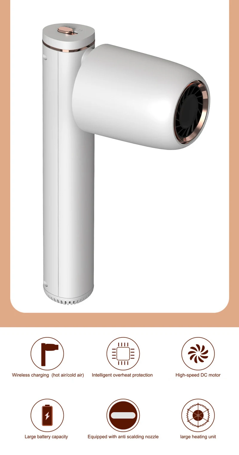 Powerful Wind Cordless Hair Dryer 400W Portable Lightweight Hair Blow Dryer Hot & Cold Charging Base Concentrator for Travel