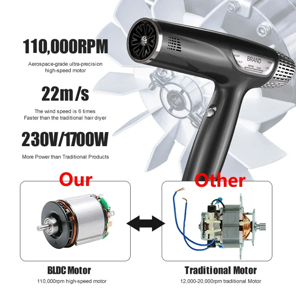 Professional 110000rpm Brushless Hair Dryer Super Powerful 1700W High Speed Negative Ions Blow Dryer 220V Electric Blower