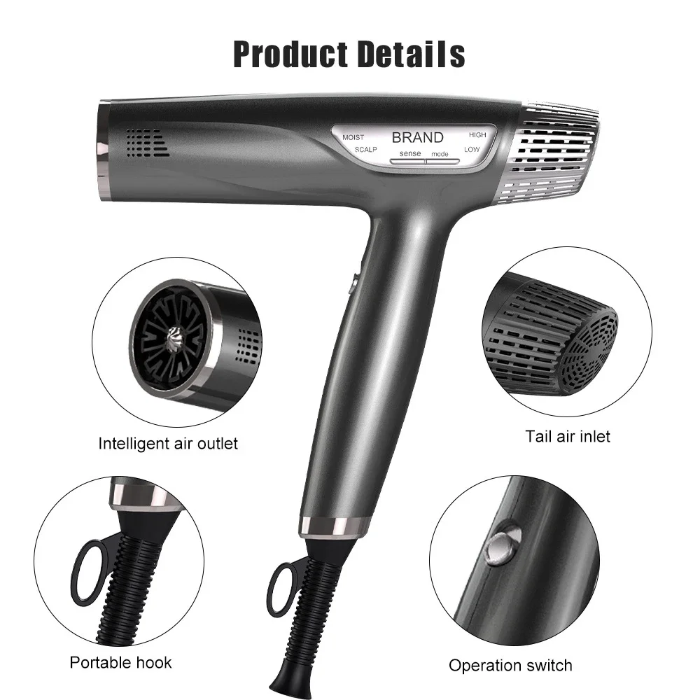 1.Using non-destructive air duct design, brushless DC motor, the speed is up to 110000RPM, the wind is strong, and the working noise can be reduced at the same time, and the drying time can be shortened by half.