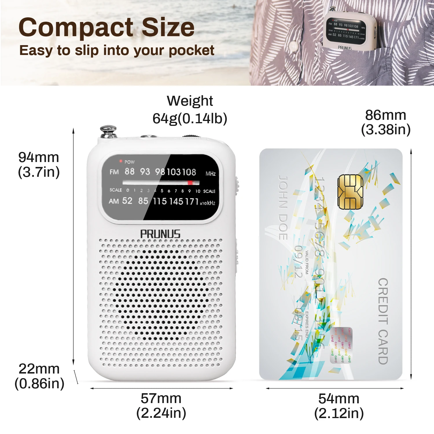 PRUNUS Pocket Radios receiver Portable AM FM Mini Walkman 2 AAA Battery Radio with Headphone Speaker for Walking Hiking Camping