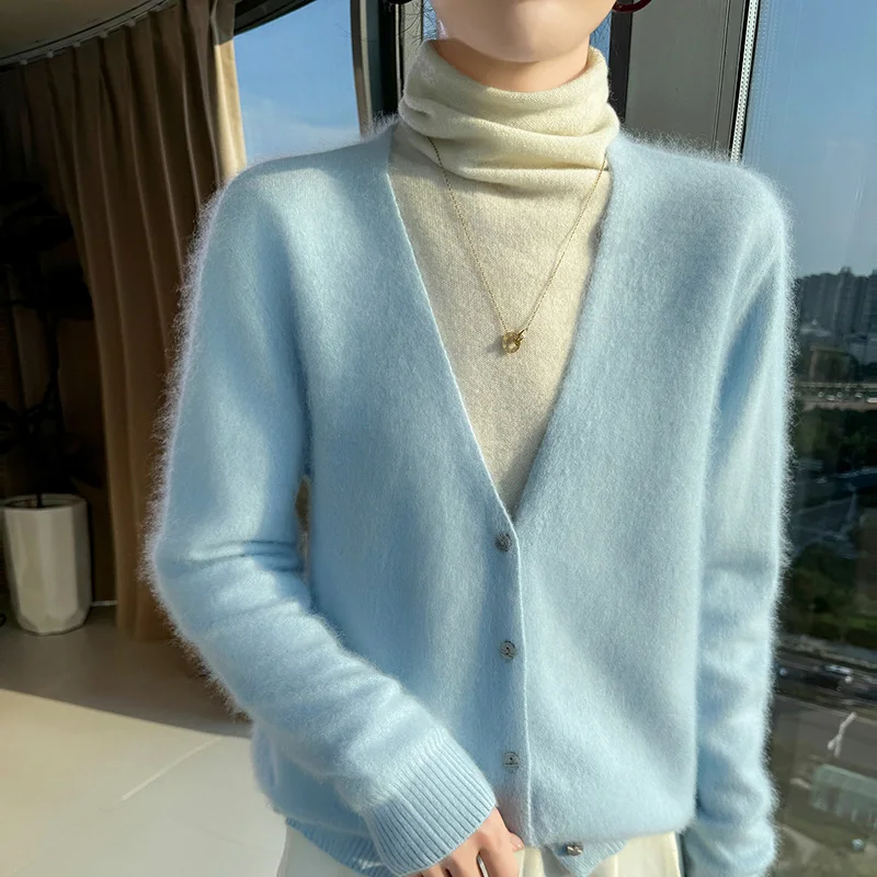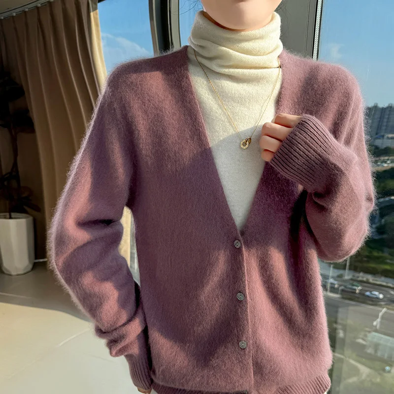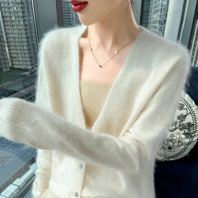 Crafted from pure mink cashmere, this cardigan offers unparalleled softness and warmth, perfect for autumn and winter wear.