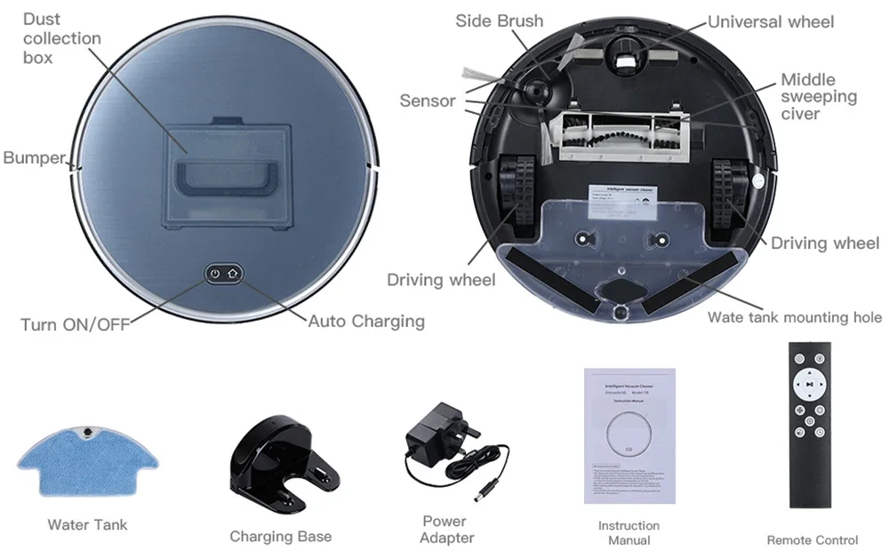 - Function 12: vaccum robot cleaner auto charge