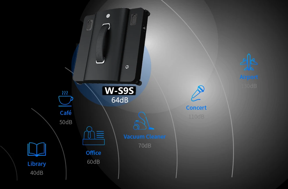 Purerobo W-S9S can work smoothly in complex environment like frameless glass big or small window frame glass, glass door, frosted glass and tile wall etc.
