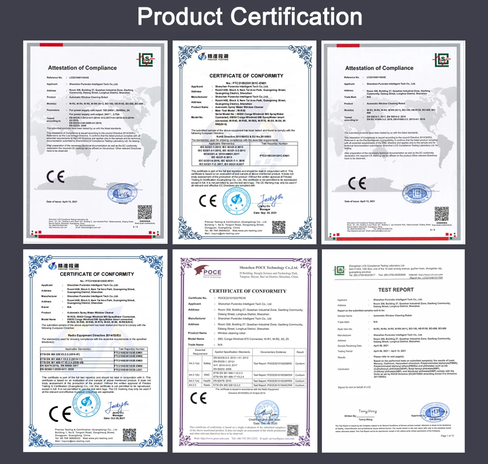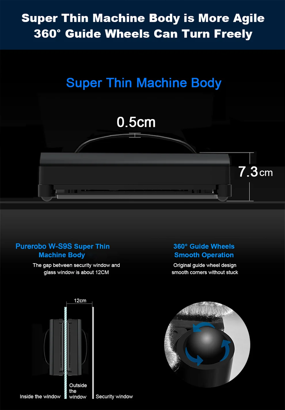 Purerobo W-S9S 2600pa vacuum suction vertical load bearing capacity of 30kgf and special track effectively increases the friction between the glass and the machine.
