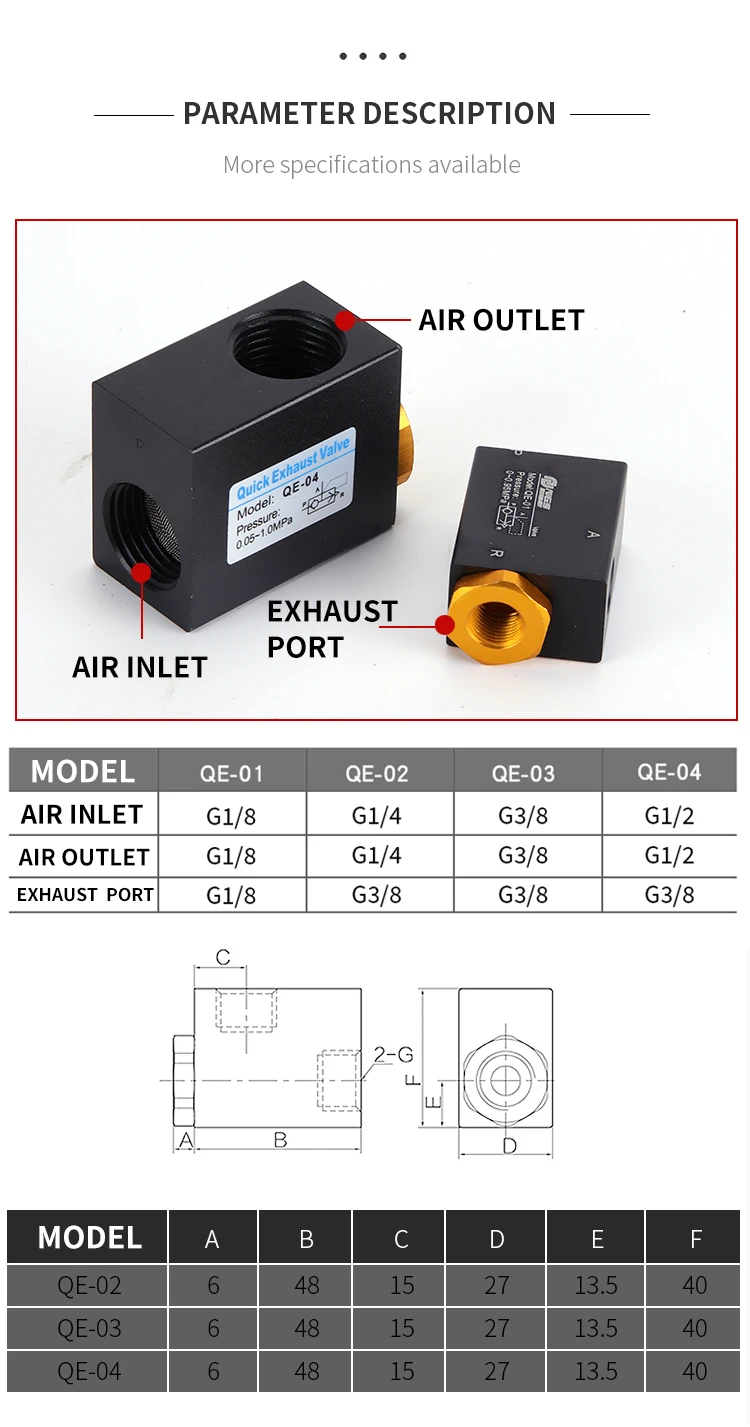 QE Pipe Pneumatic Air Quick Release Exhaust Control Valve Aluminum High Quality QE-01/QE-02/QE-03/QE-04