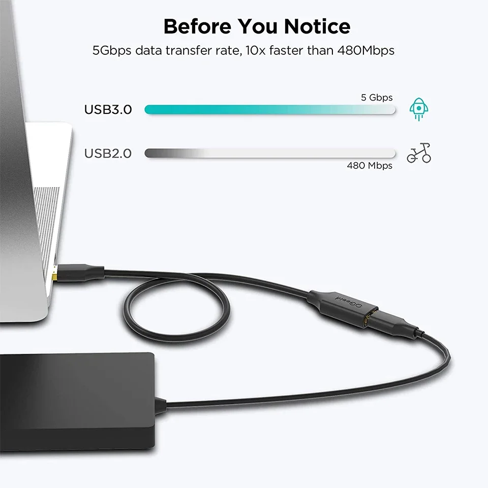 2.USB 3.0 Fast Charging & Data Syncing: The USB 3.0 extension cable offers SuperSpeed data transmission speed up to 5Gbps, 10X faster than USB2.0 cable.