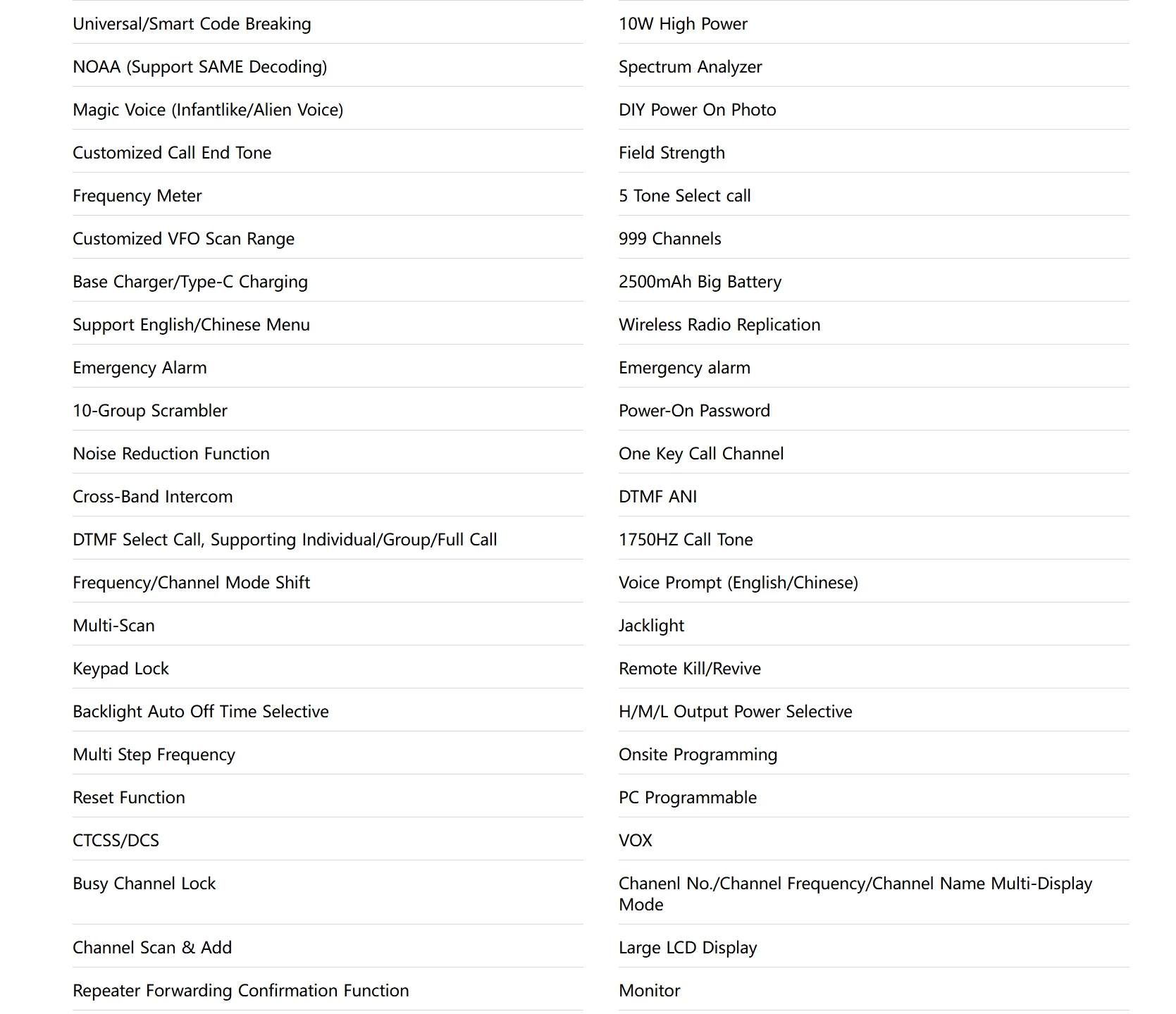 - Frequency Range: 144-148MHz,156-163MHz,430 – 440 MHz,446MHz,462-467MHz
