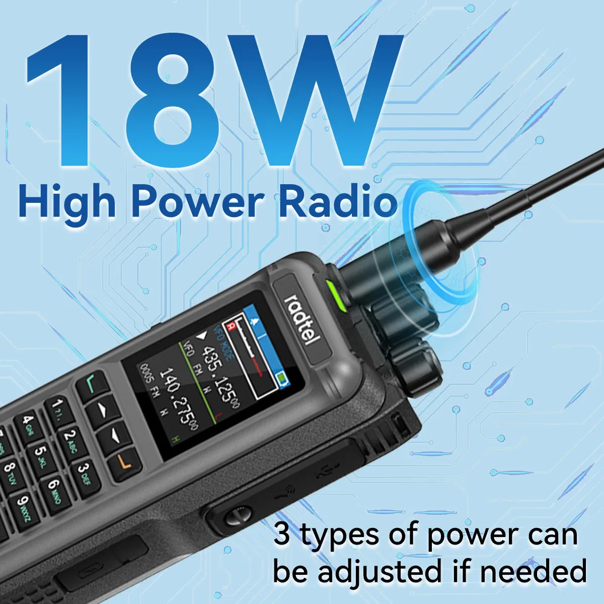 The power range of this walkie talkie is 10W-18W, which can maintain stable and reliable communication connections in complex environments and provide a wider communication coverage area.