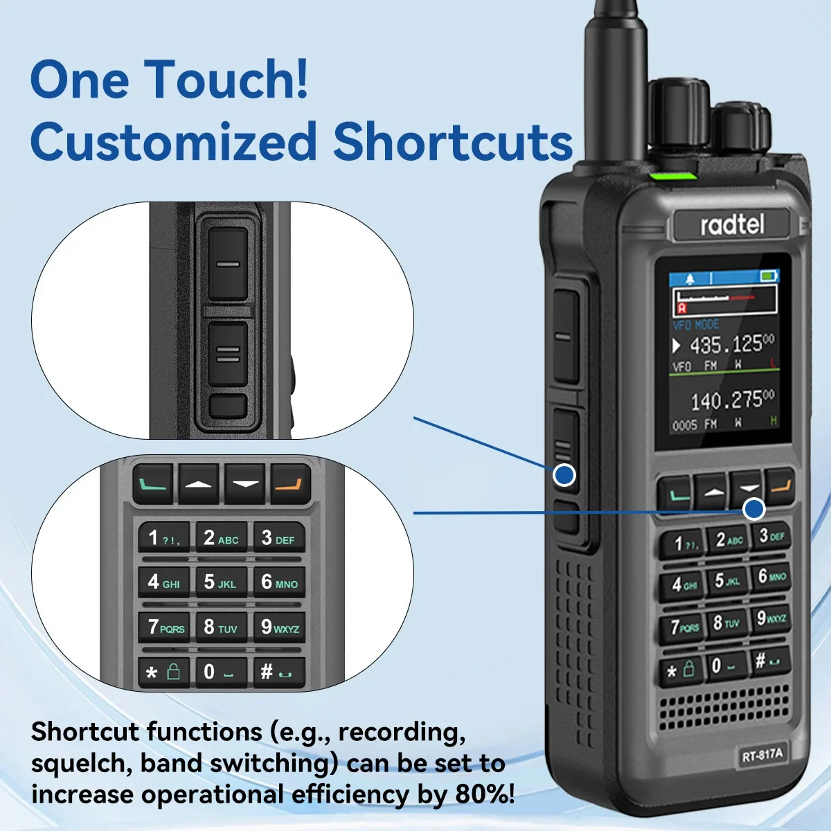 The side keys and keyboard of this walkie talkie can be customized with shortcut functions, and you can customize shortcut buttons according to your own usage needs.