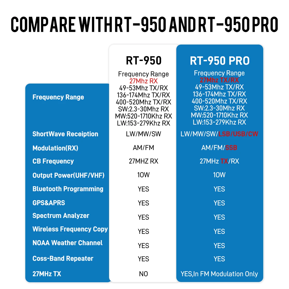 PLEASE NOTE RT-950 Can’t transmit 27Mhz
