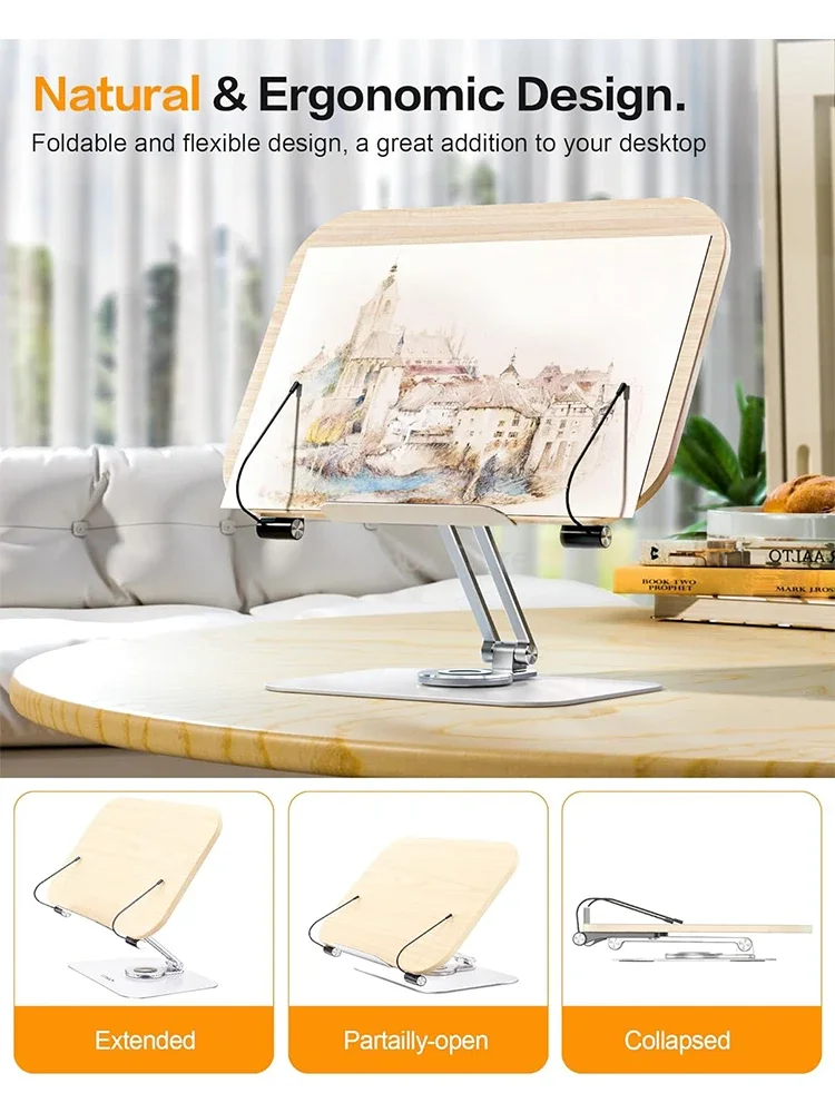 Reading Stand Adjustable Desktop Book Stand for Reading with 360° Rotating Base Cookbook Bracket Desk School Office Furniture