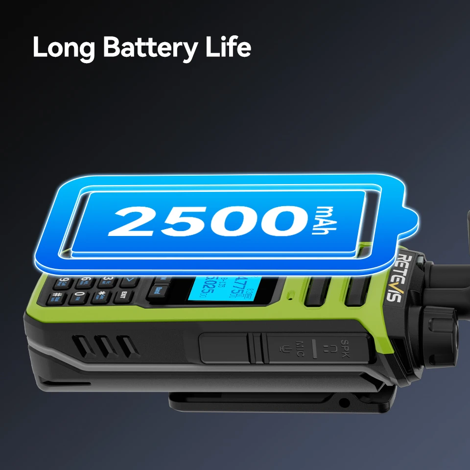 A3 walkie talkie with 2500mAh battery; offers 119 hours of standby time and 16 hours of usage; making it right for outdoor enthusiasts who need reliable communication on the go; you’ll put more time enjoying your adventures