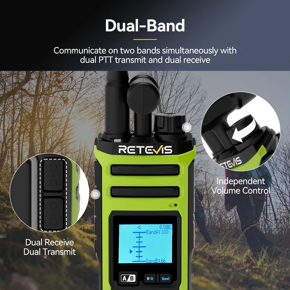 A3 walkie talkie’s dual channel complete with independent volume control and separate PTT buttons; allows for receiving two channels; suitable for outdoor enthusiasts who need to watch multiple bands