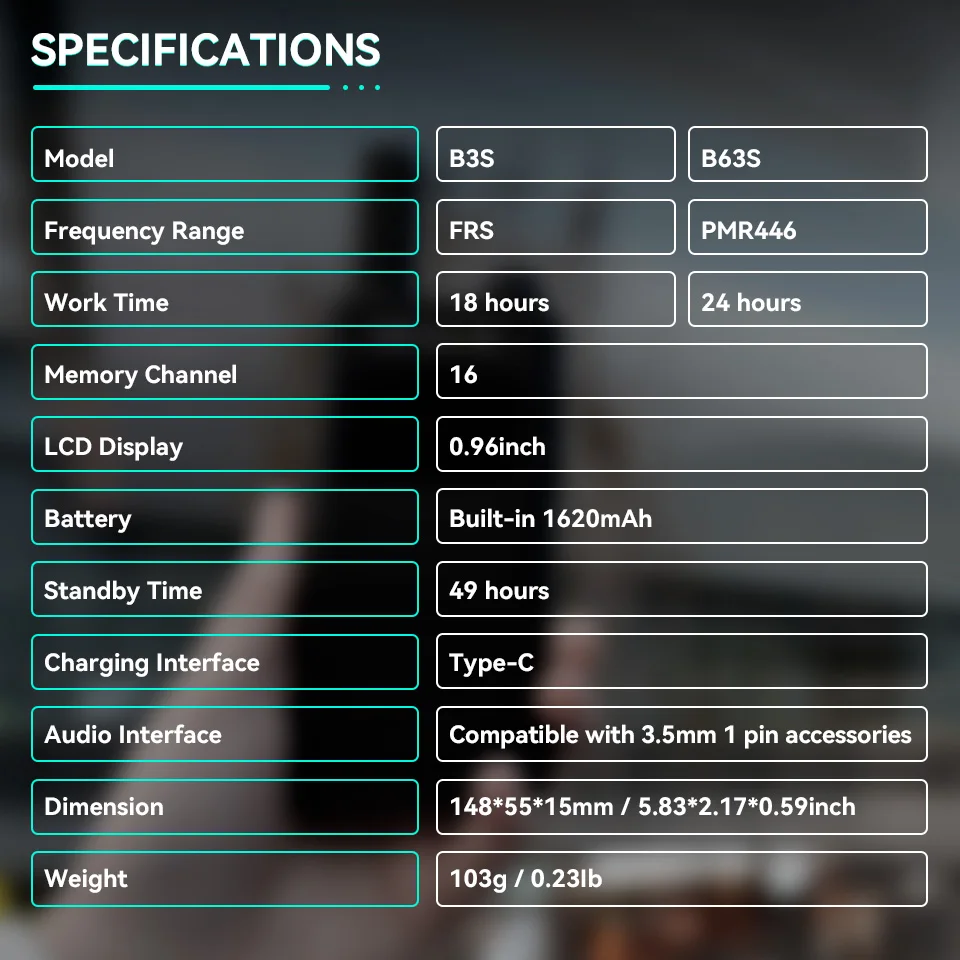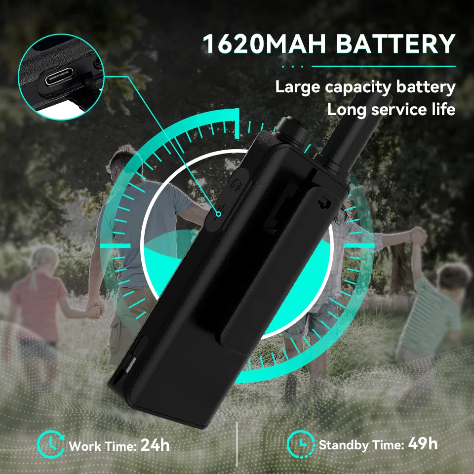 The built-in 1620mAh battery offers 18-hour/24-hour work time to support all-day use without worrying about running out of power and charging 2 way radio frequently.