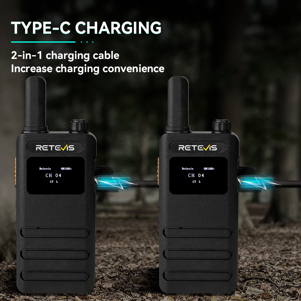 With 2-in-1 charging cable and a standard Type-C charging interface, you can recharge two walkie talkie at the same time, increasing the charging convenience.