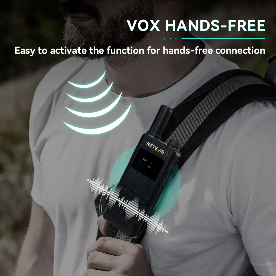 Walkie talkie with VOX function allows you to communicate with family members all the time during outdoor camping or biking activities.Free your hands.