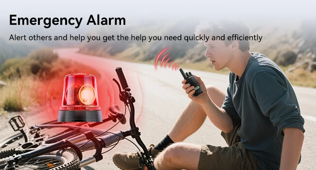 activate the emergency alarm with a long press of Side Key 1; and deactivate it with the PTT key walkie talkie; provides peace of mind during family emergencies; camping mishaps; or cycling accidents.