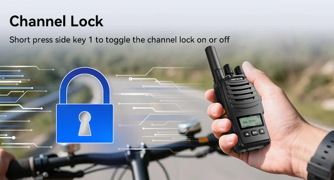 lock your channel to prevent accidental changes; ensure uninterrupted communication during family gatherings; camping trips; or cycling events