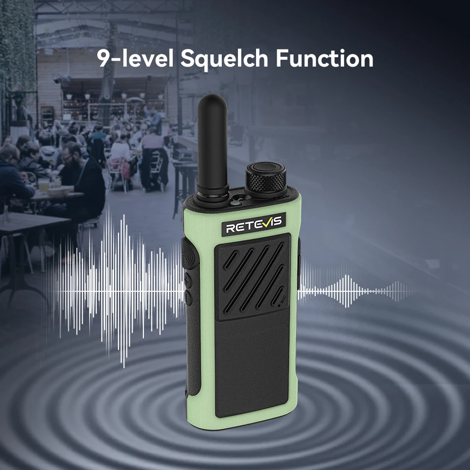 9-level squelch function effectively filters out the background noise; communicate with others with a clear voice in noisy restaurants; warehouses; etc