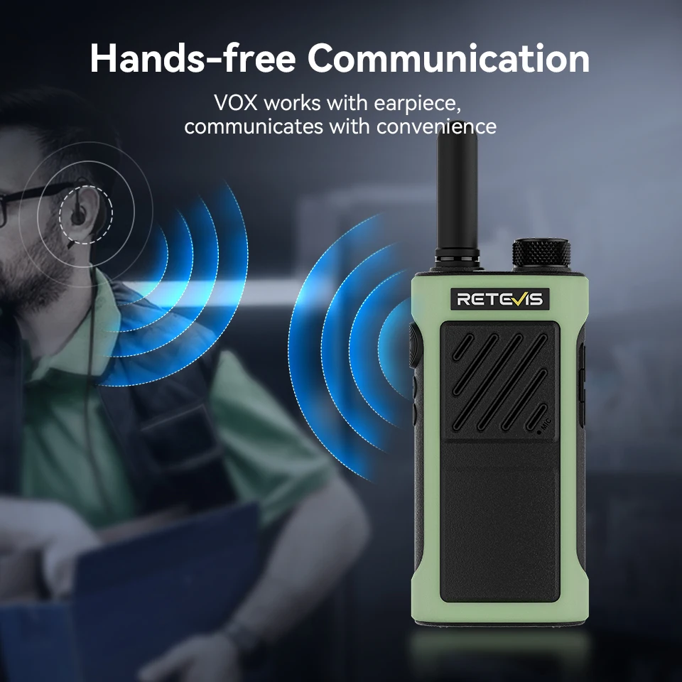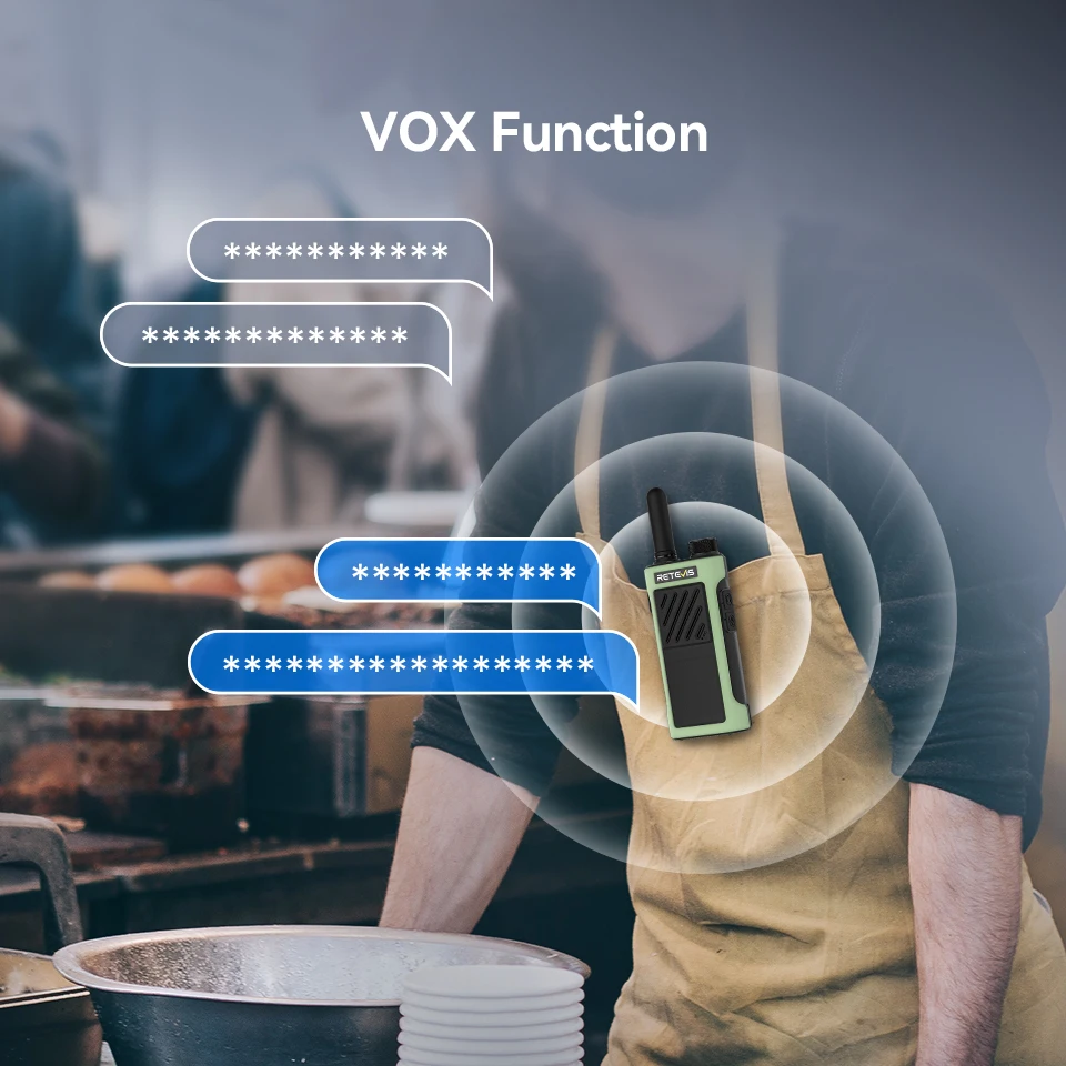 9-level squelch function effectively filters out the background noise; communicate with others with a clear voice in noisy restaurants; warehouses; etc