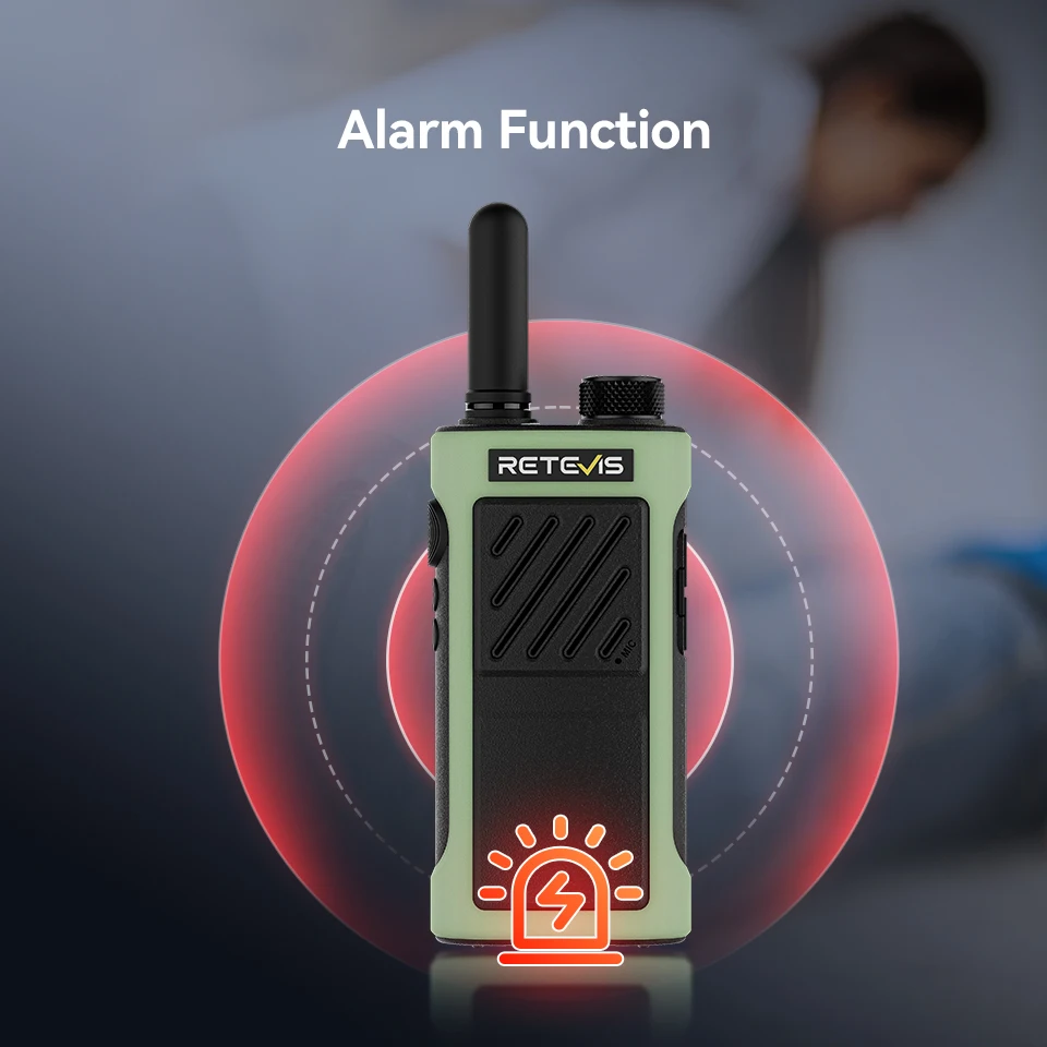 walkie talkie includes remote and local two alarm modes; long press the side key 1 to turn on either of them; seek help and get out of trouble in emergencies