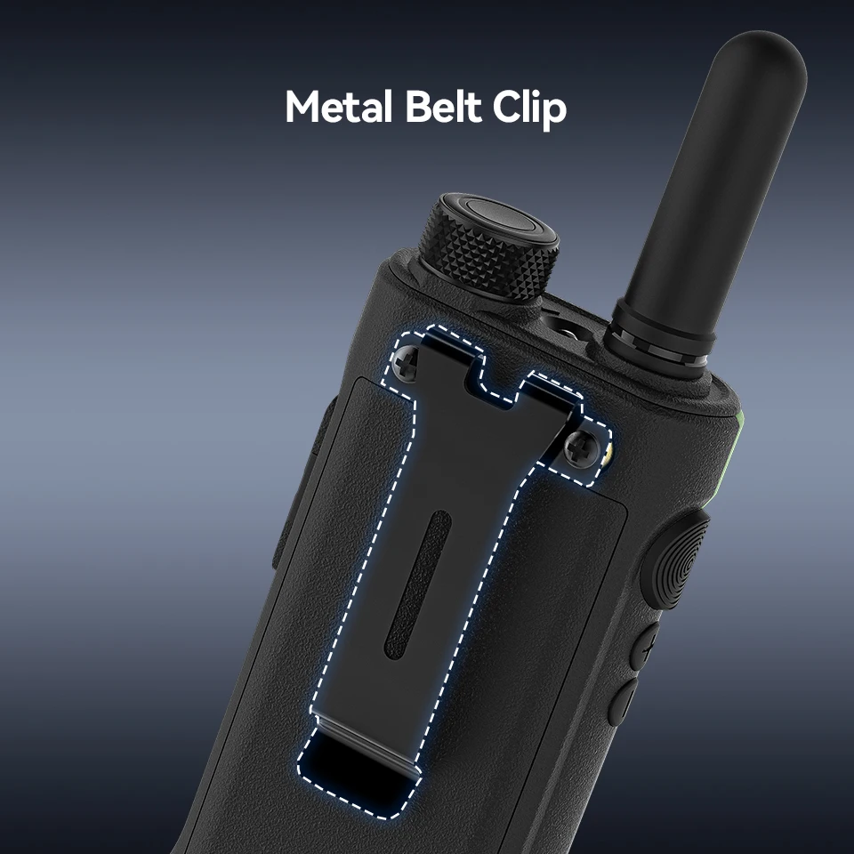 with a durable metal belt clip and 0.31Ib weight; you can easily carry the 2 way radio for efficient communication at work