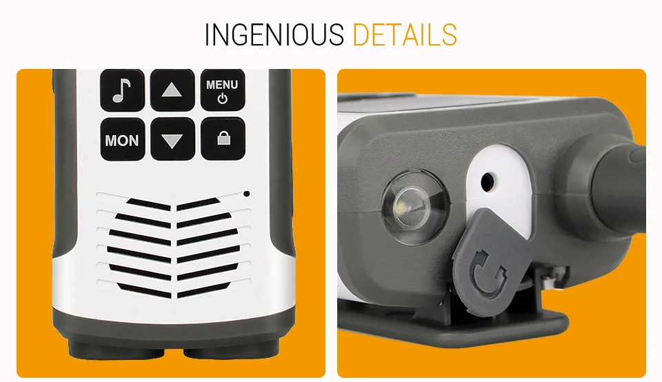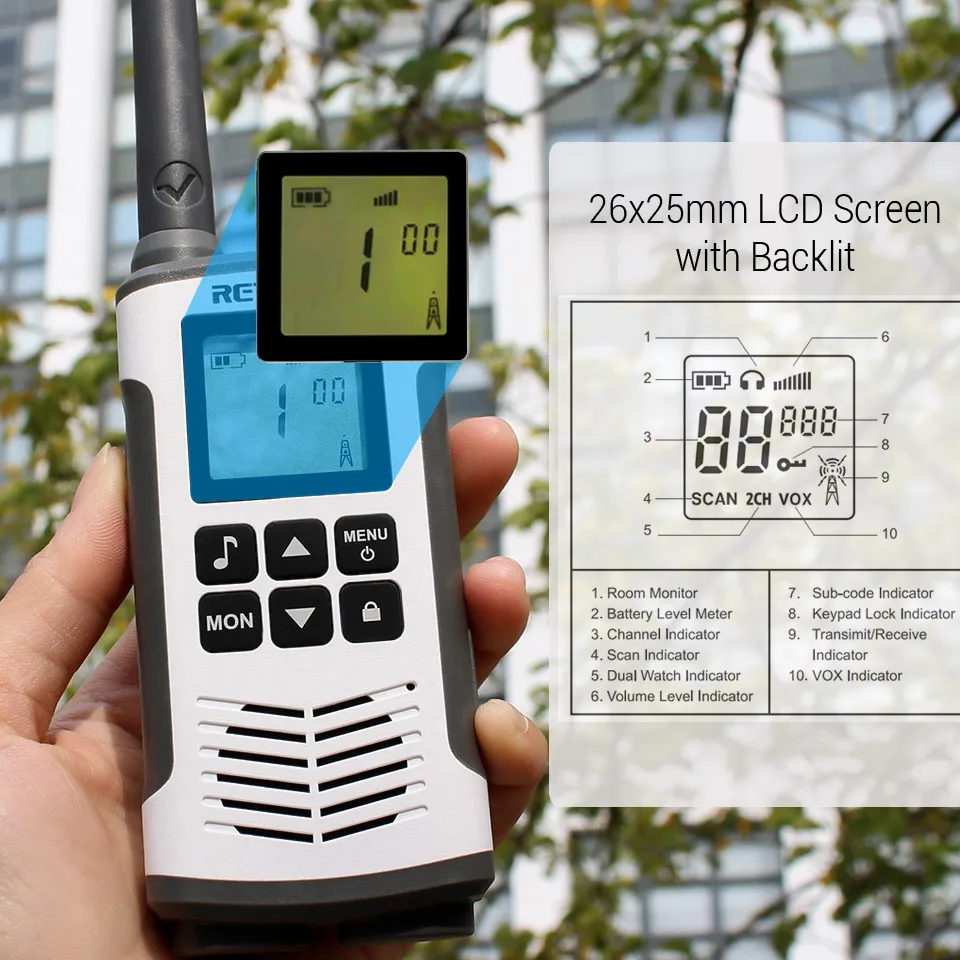 The walkie talkie will dependably receive the emergency weather forecasts and emergency news broadcasts from NOAA to help you to adjust your travel in time (for FRS version).