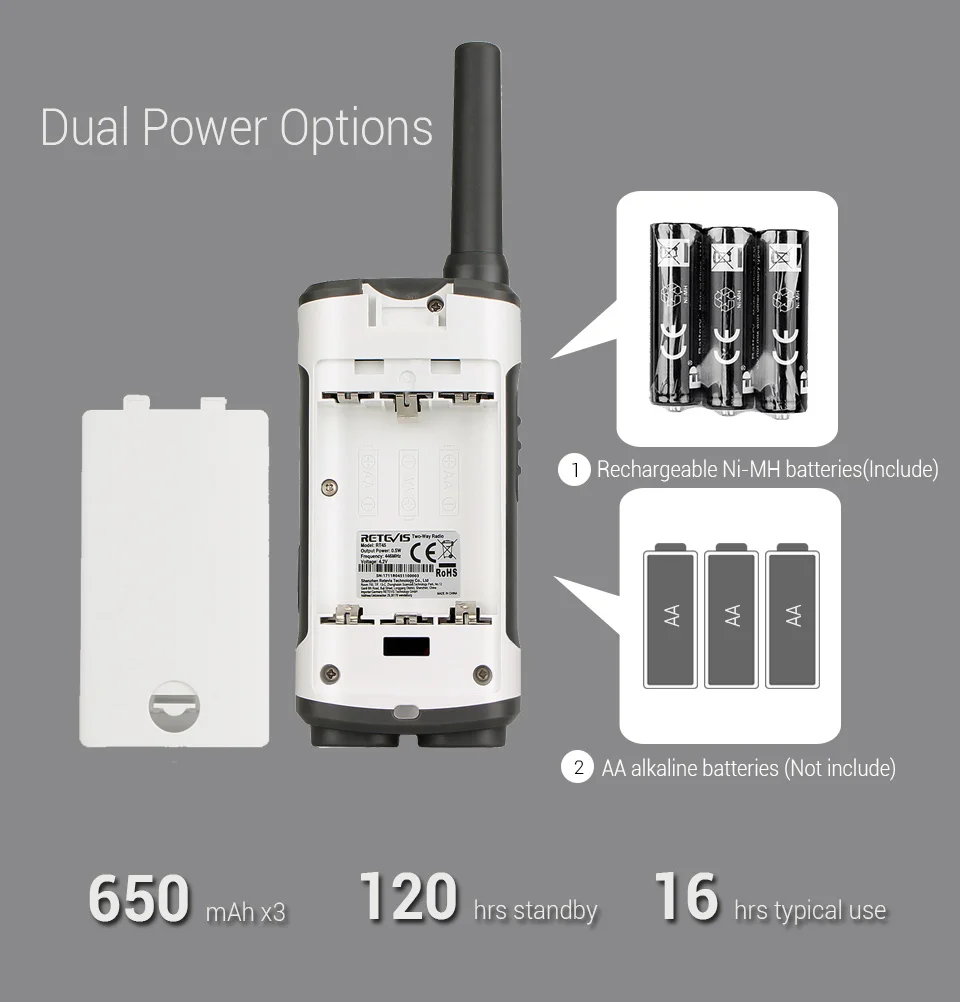 RT45P supports not only AA rechargeable NIMH batteries, but also AA alkaline batteries. Don’t worry about the problem that the original battery is broken. Please note that alkaline batteries cannot be charged by USB.