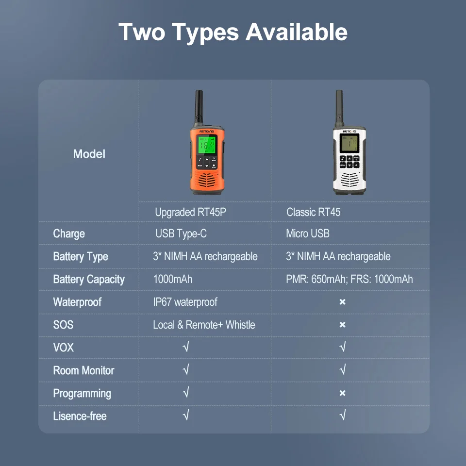 Q1: What’s the difference between TLKR T50 and Retevis RT45 ?