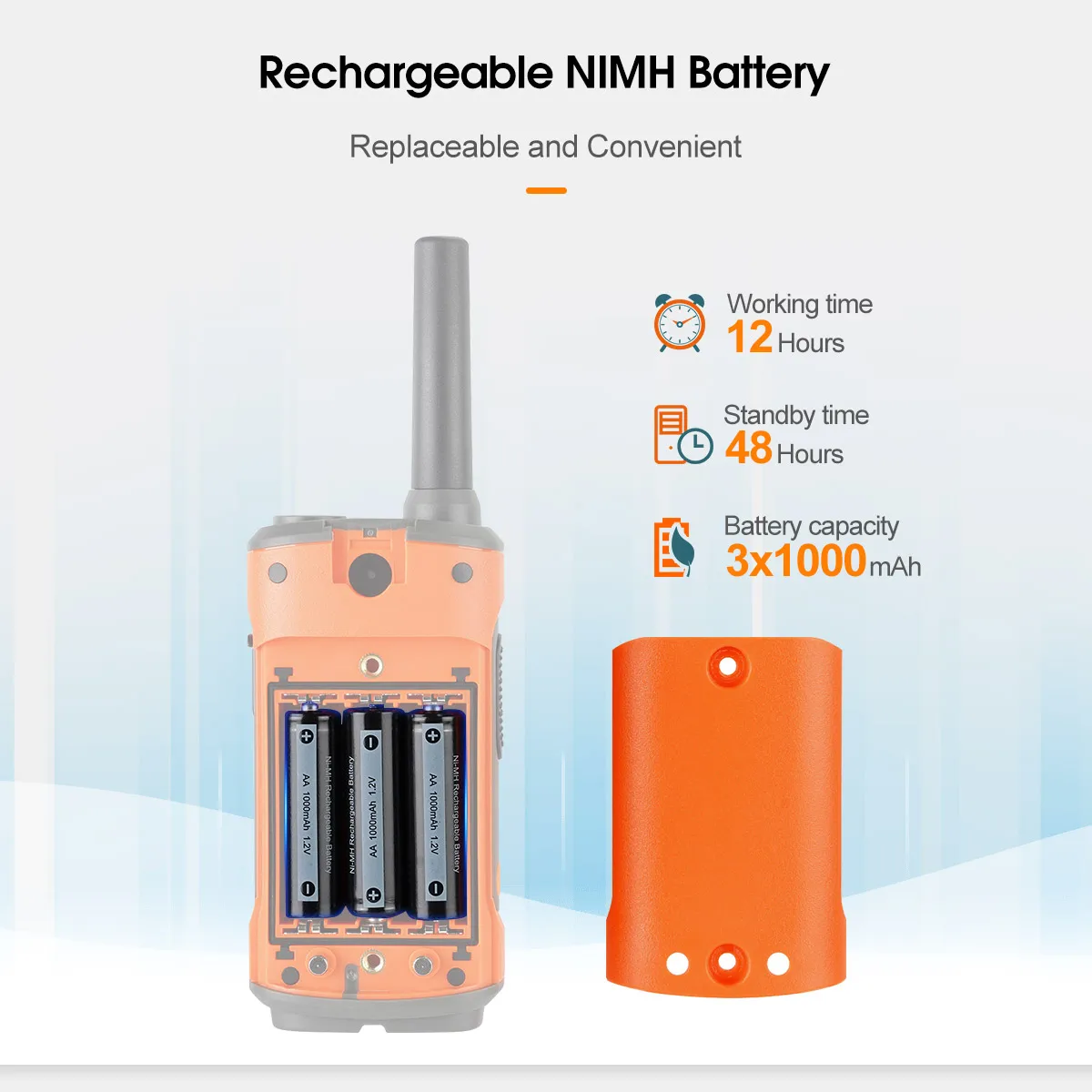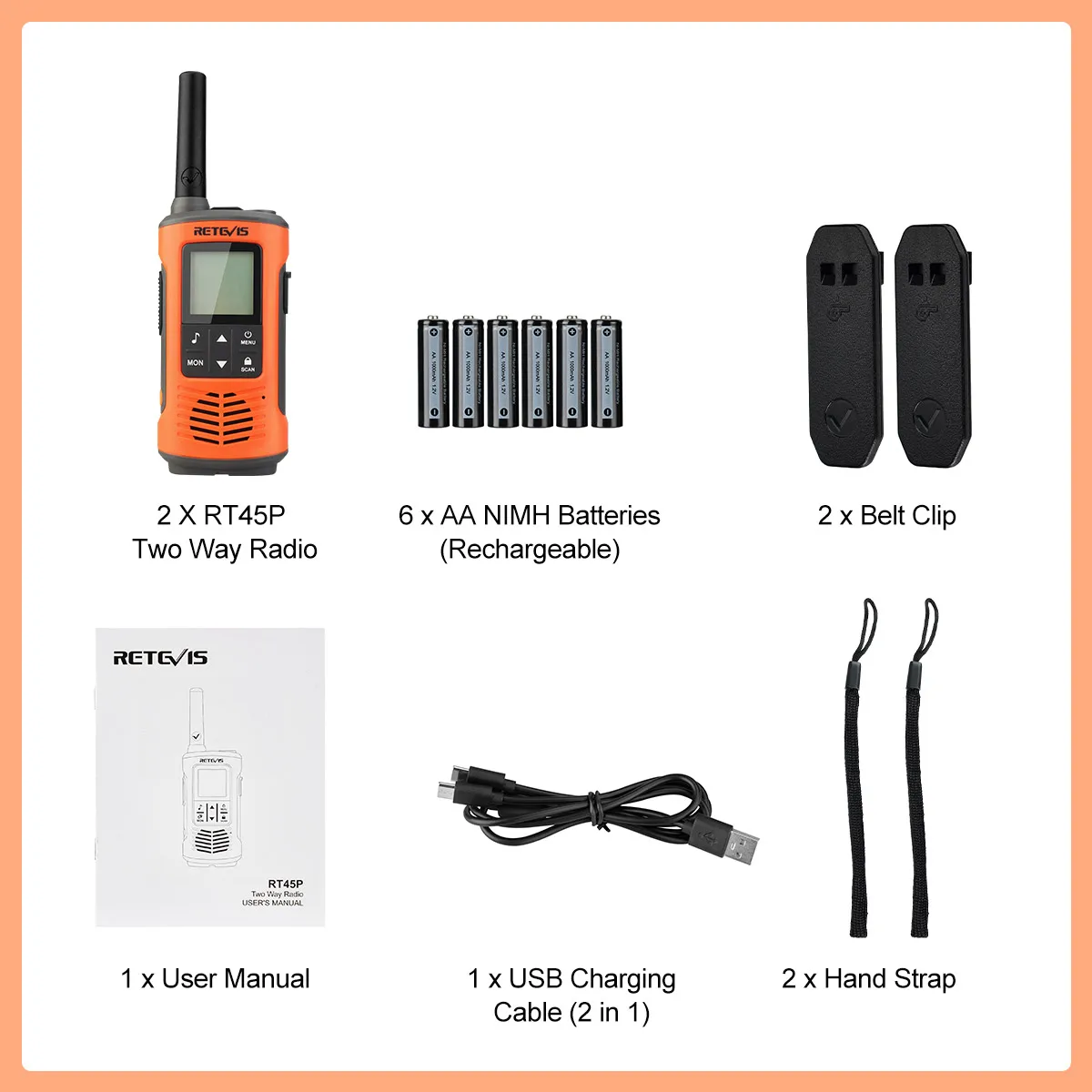 RT45P supports not only AA rechargeable NIMH batteries, but also AA alkaline batteries. Don’t worry about the problem that the original battery is broken. Please note that alkaline batteries cannot be charged by USB.