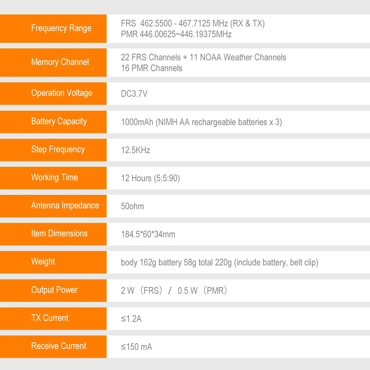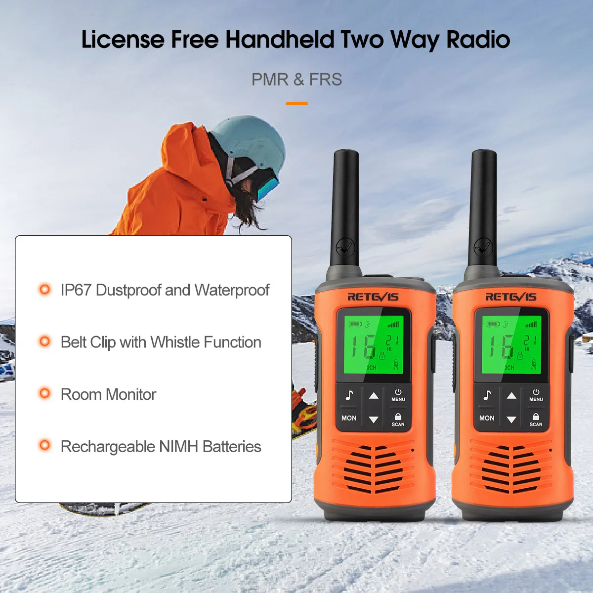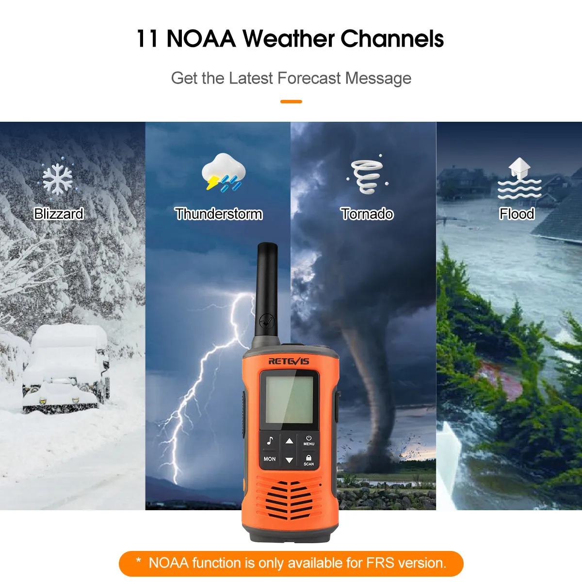 The walkie talkie will dependably receive the emergency weather forecasts and emergency news broadcasts from NOAA to help you to adjust your travel in time (for FRS version).