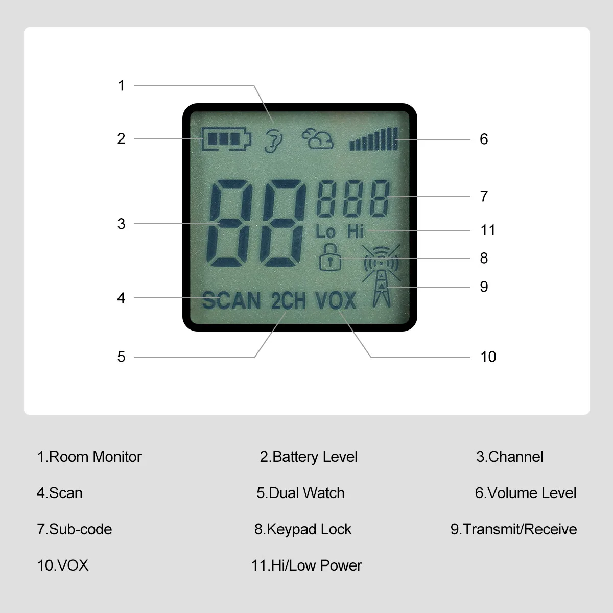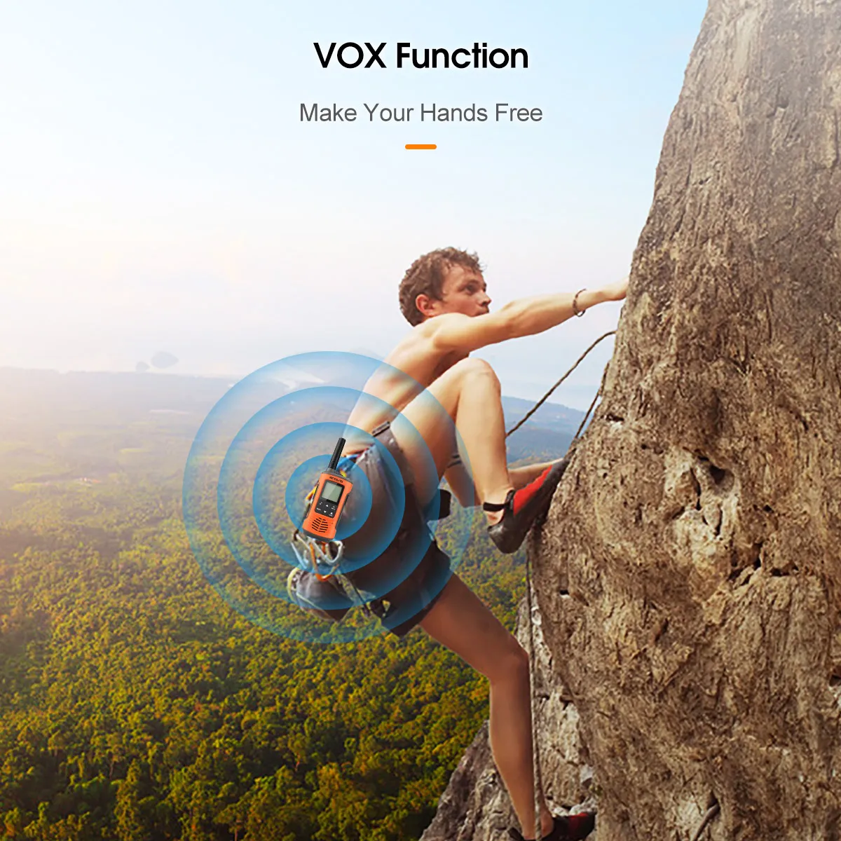 Voice-activated transmission function (VOX) with 5 sensitivity levels for hands-free operation. when climbing, cycling or driving , turn on the hands-free to ensure safety.