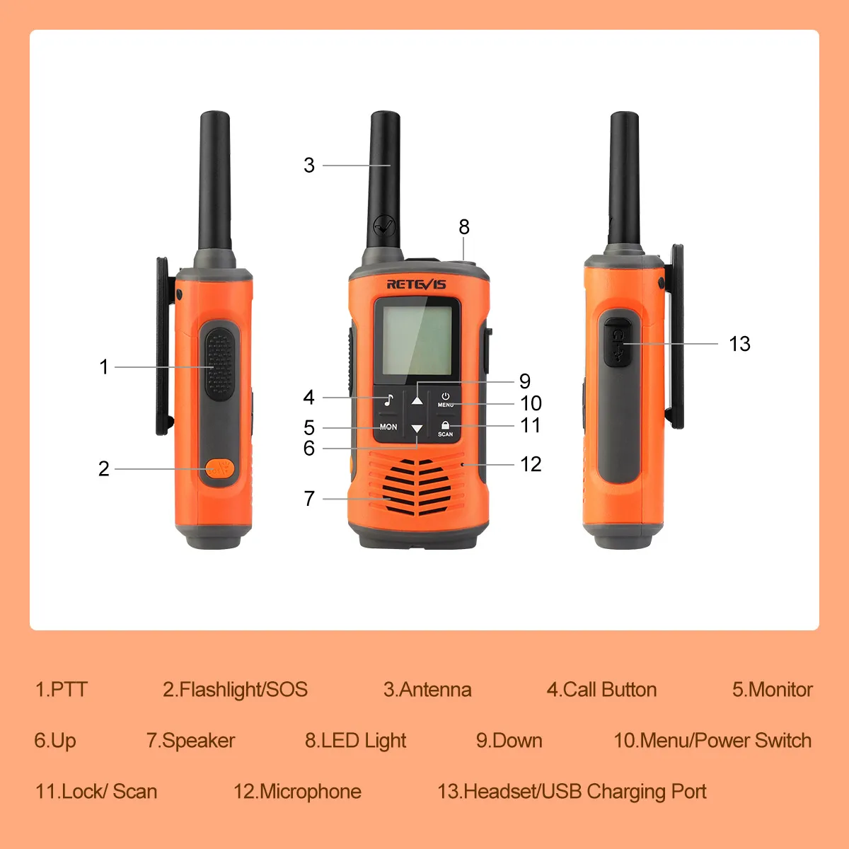 Built-in LED flashlight, RT45P helps to light your way during evening activities and ensure your safety.