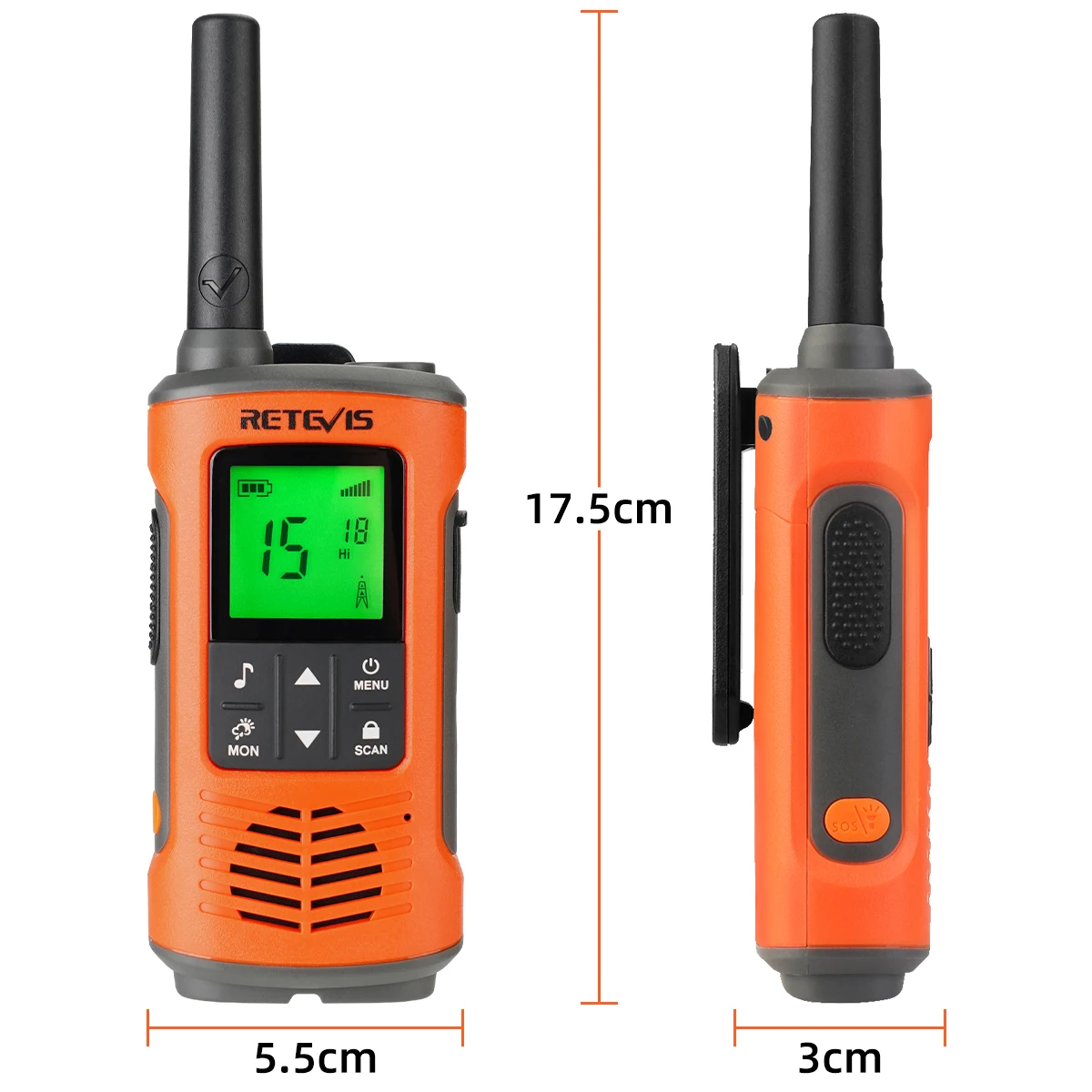 Comes with whistle design and SOS button, when you are in dangerous situations, you can press the orange button to send signal and remove the belt clip as a whistle to make a loud sound for help.