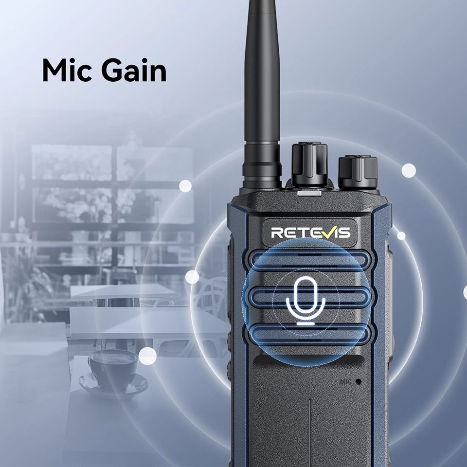 Retevis RT86A long distance walkie talkie supports optimizing the mic sensitivity by adjusting the gain to a suitable level; you can transmit more clearly.
