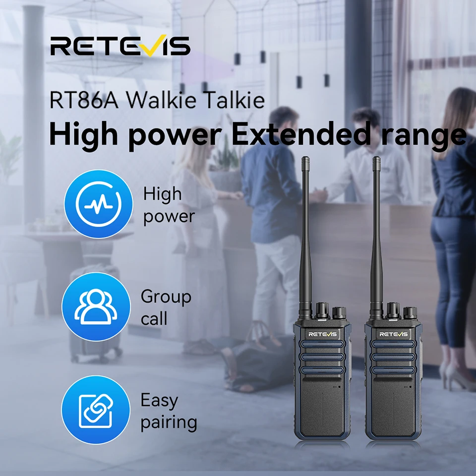 Retevis RT86A communication radio can initiate the group call to communicate with various channels; enhance communication efficiency; and help the work run fast.retevis RT86A walkie talkie is equipped with the group call function; allowing you to call team members quickly without complex settings.