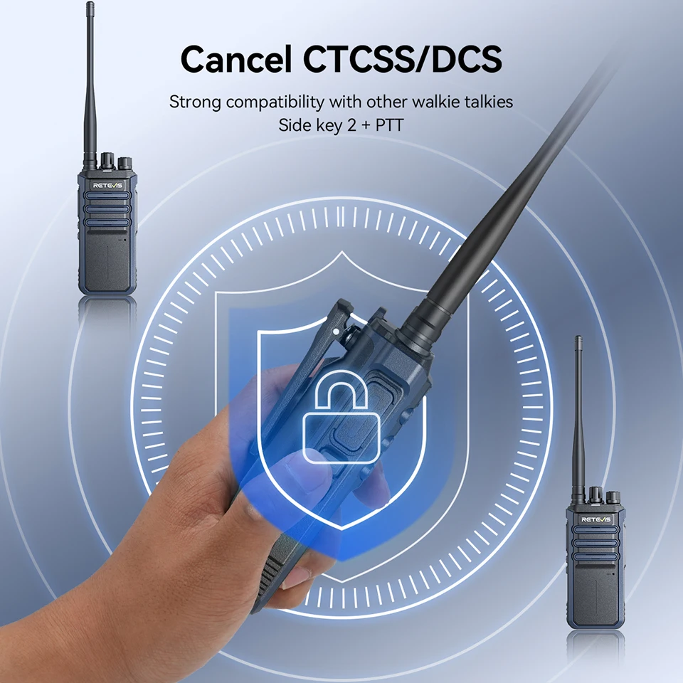 Retevis RT86A communication radio can turn off CTCSS/DCS through the PTT key and side key 2; increases the compatibility of communication; reducing the communication obstructions at work.