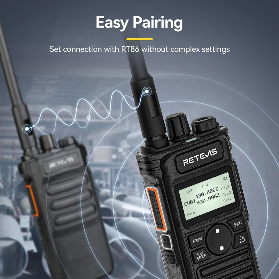 RT86S walkie talkie easily pairs with other same frequency two way radios; such as NR30S/NR630S/RB48P/RB648P; users use the RT86S more flexibly with various teams