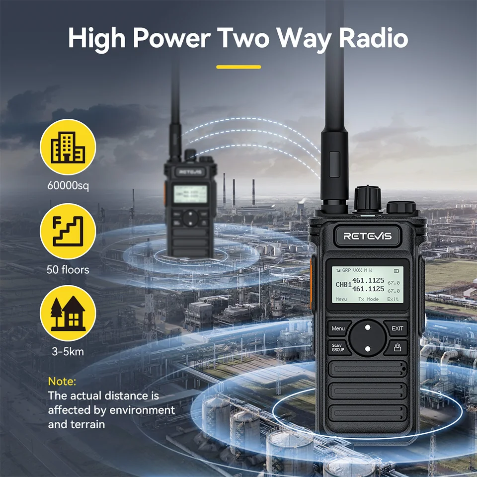 High power RT86S walkie talki has a strong signal and penetration; whether you work in city industries or outdoors; smooth connection is achieved;when in 50 floors building or 700,000sq.ft/60000sq areas; high power with strong penetration ensures smooth and stable communication at work .